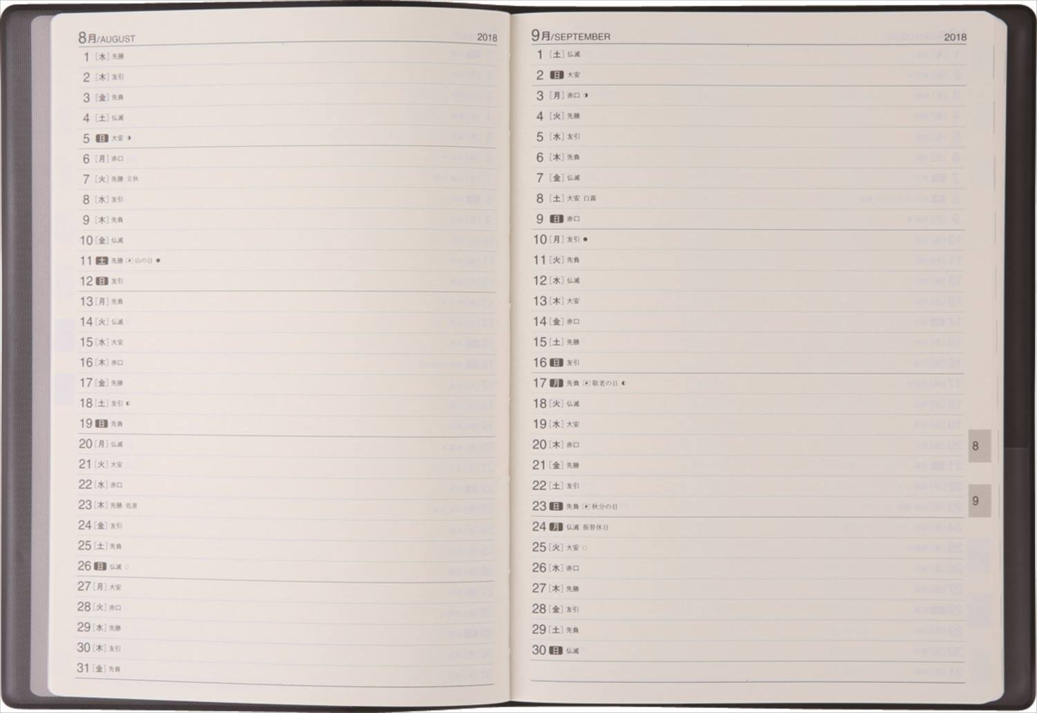 The schedule of the month is easy to see, the daily schedule field is just right space. I think that it is easy to use that there is no time ruled line.