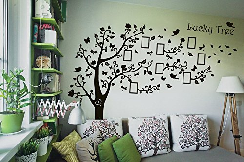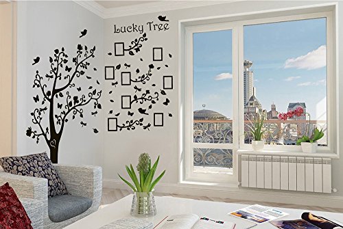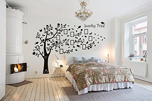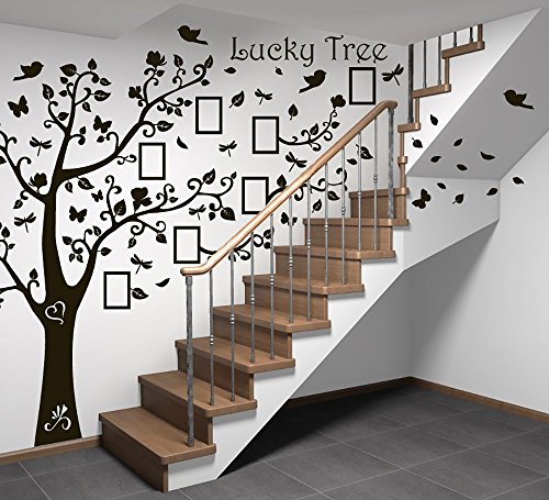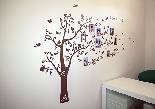 Wall decal Lucky tree with picture frame Vinyl sticker for living room and badroom Family tree with birds Brown Satin effect