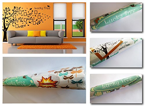 Size of the applied decal is 63 in by 71 in, which is an optimum size for living areas. The height can be adjusted by lifting the sticker from the floor to the desired location. The total length can be changed by stretched or compressed arrangement of the branches.