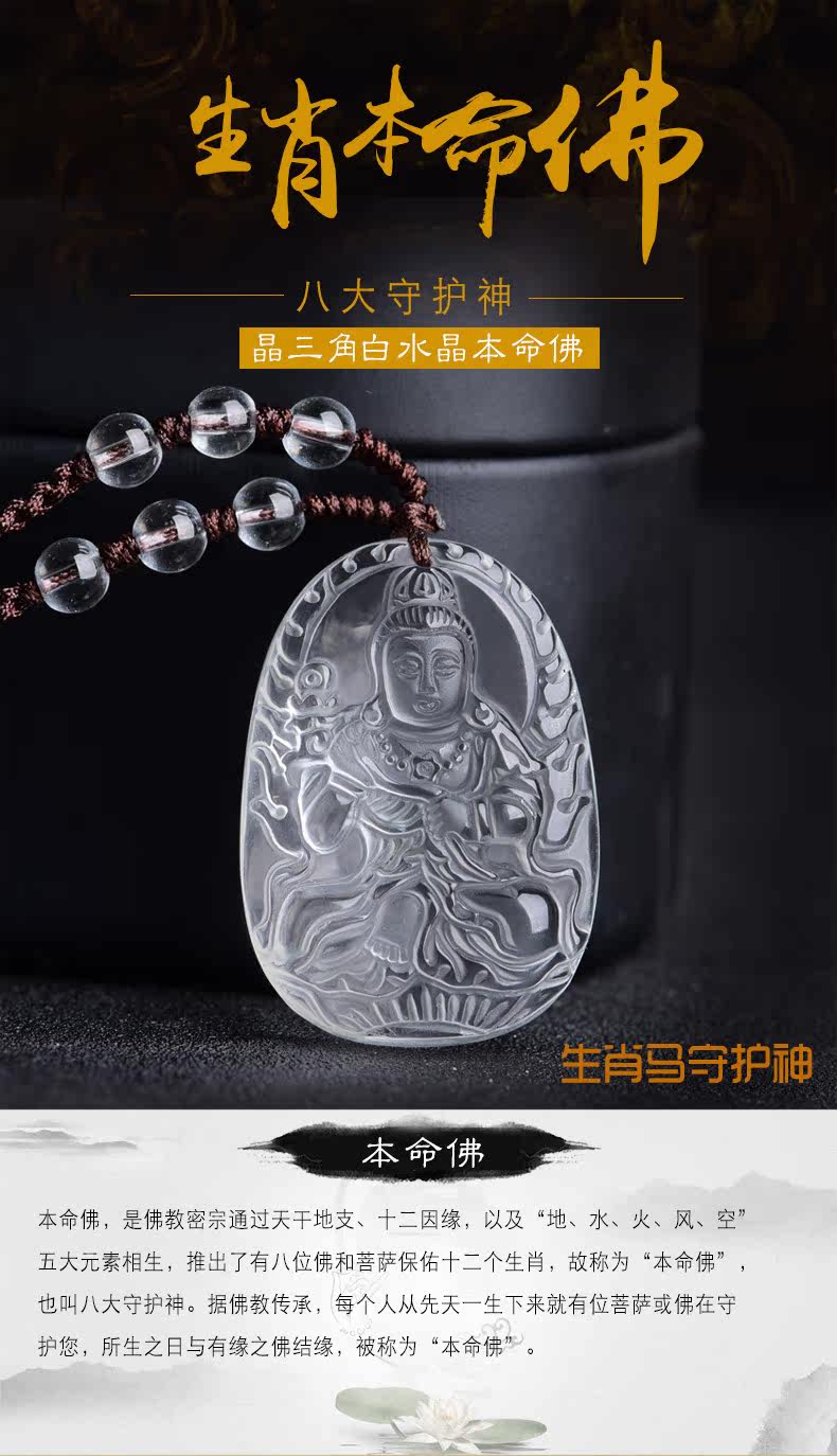 开光 天然白水晶大势至菩萨吊坠 属马本命佛守护神男女款项坠挂件