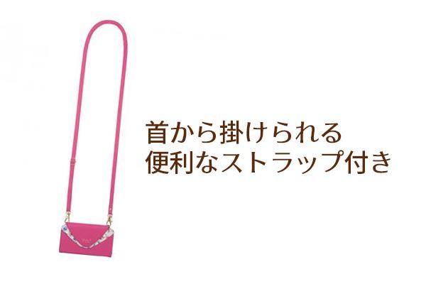 | ちらっと見える花柄がさりげなくおしゃれな、シンプルで使いやすいiPhoneケースです。便利なミラーやカードポケット、さらに首から掛けられるストラップも付いていて使い勝手も抜群! |