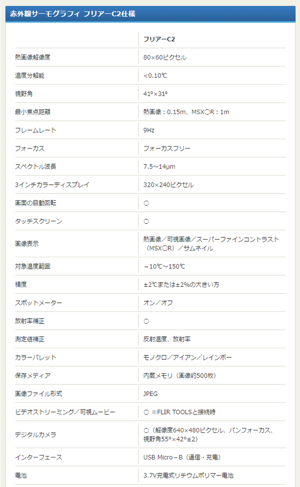 【商品名】赤外線サーモグラフィー(熱画像装置) コンパクト/ポケットサイズ スーパーファインコントラスト搭載 フリアーC2