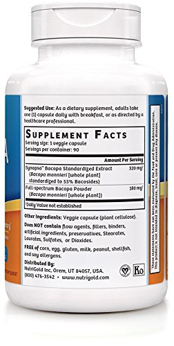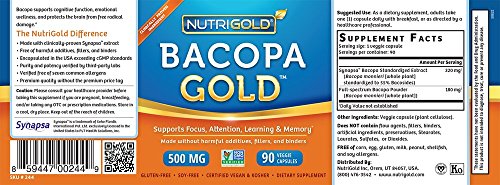 -. Title : NutriGold Bacopa GOLD - 500 mg, 90 Vegetarian Capsules (Pure Bacopa Monnieri Extract Memory Supplement)