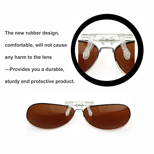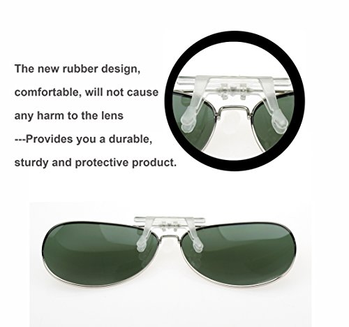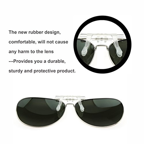 Package : 1pcs sunglasses clip,1pcs clean cloth,1pcs test card and 1pcs pouch. * metal clip rubber cover on each leg * -The clip is forged by premium metal material and with rubber cover on each leg. -Provides you a durable, sturdy and protective product . *Easy to clip on to any regular glasses*