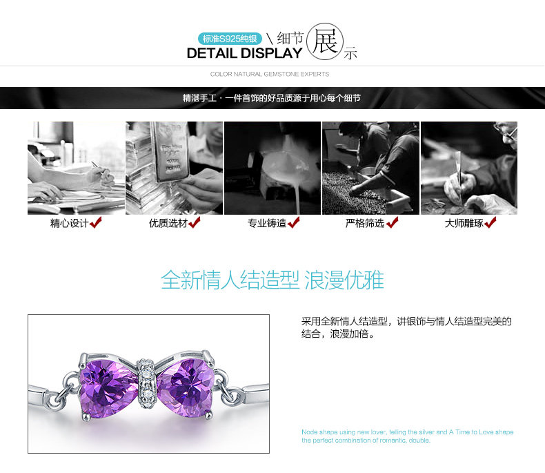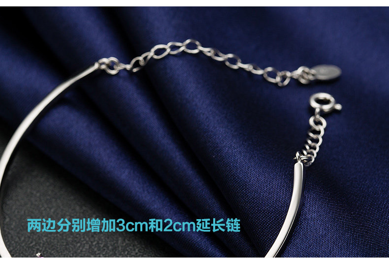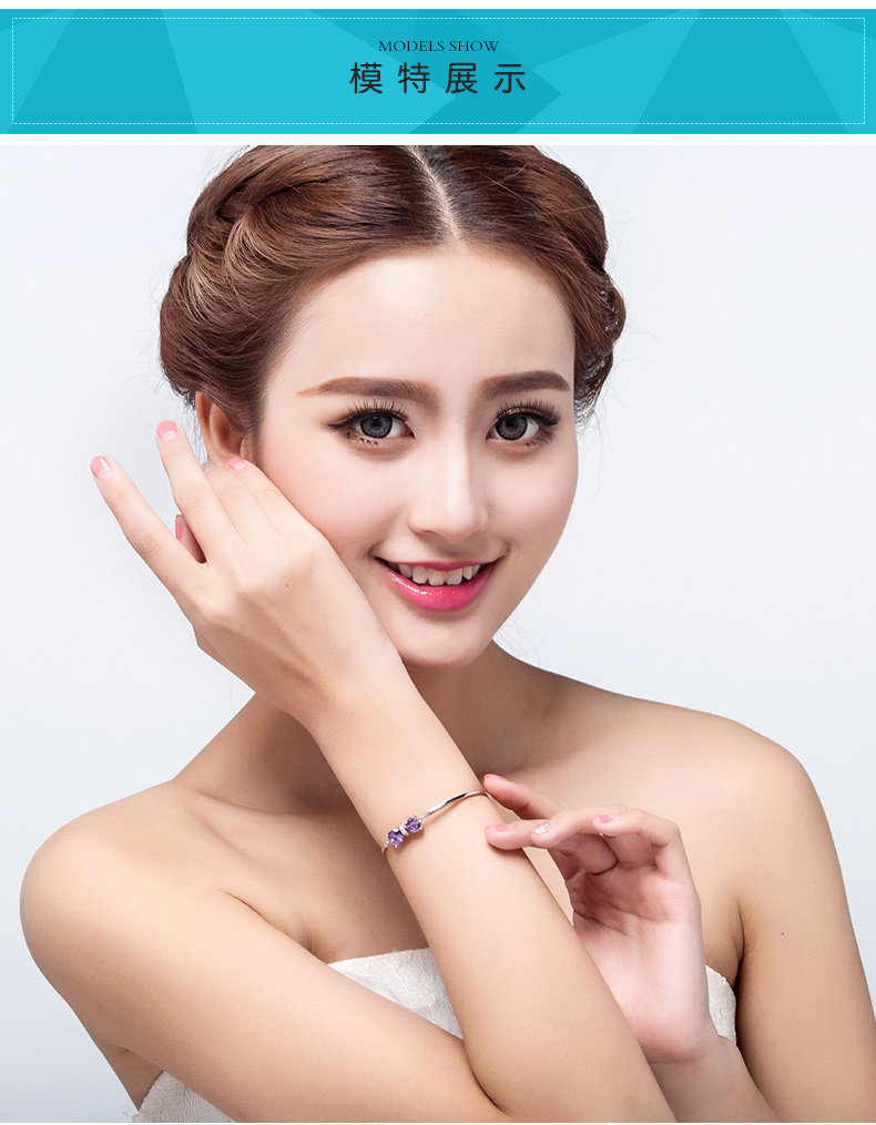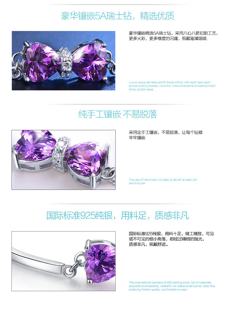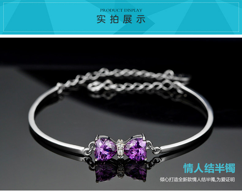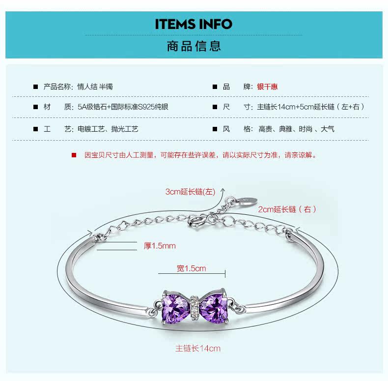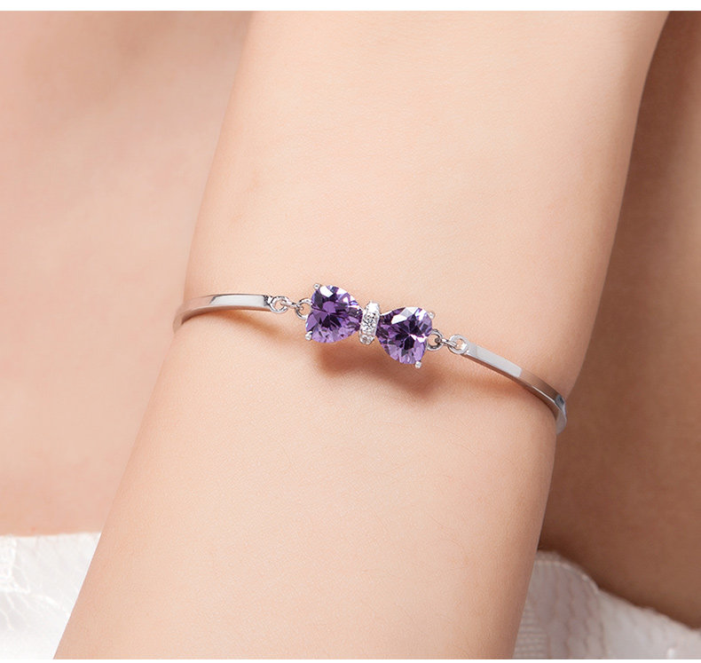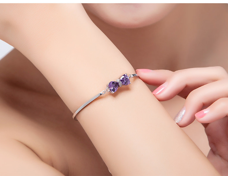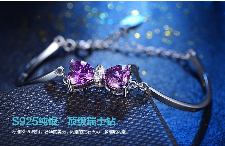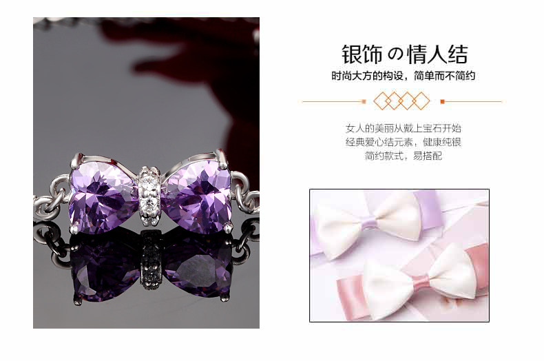 银千惠925银手链女紫色蝴蝶结银饰品 生日礼物女友