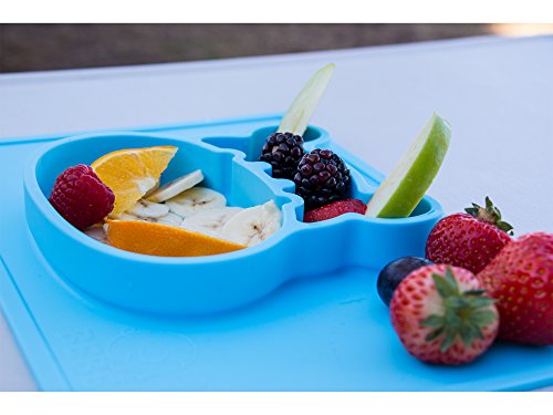 -. Title : Silicone placemat and baby plate tray for infants toddlers and kids - these portable hippo happy mats one piece bowl suctions and fits to most tables highchair non slip baby feeding FDA Approved .