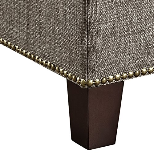 - Feature : Upholstered hinged top square ottoman with complementing nailhead trim / Durable gray linen-look fabric / Espresso finished solid wood feet / Interior dimensions: 25.6in W x 25.6in D x 7in H / Minimal assembly required