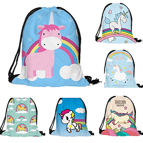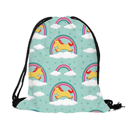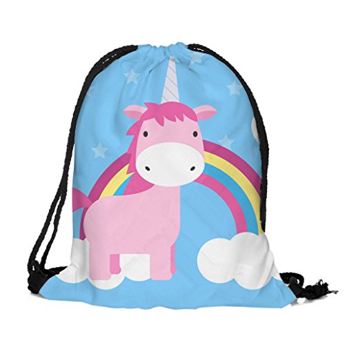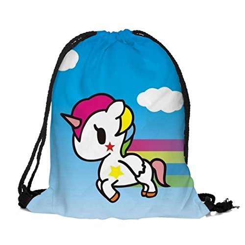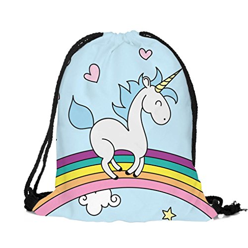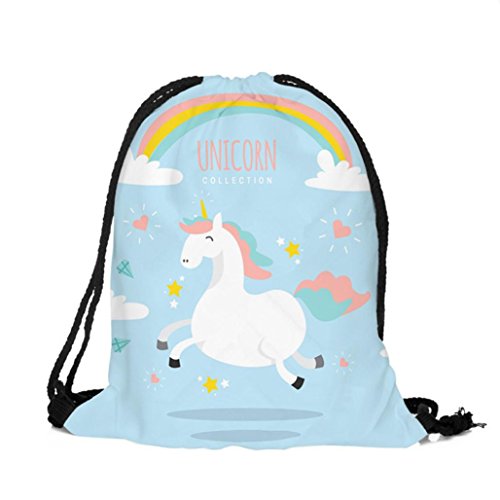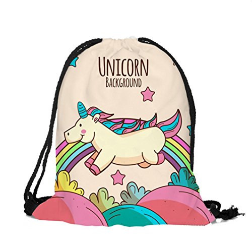 (Quartly)/Accessories/Luggage, Bags Travel/DIRECT FROM USA/Quartly 3D Print Unicorn Backpacks Cute Cartoon Unicorn Elements Drawstring Bag Shoulder Bag