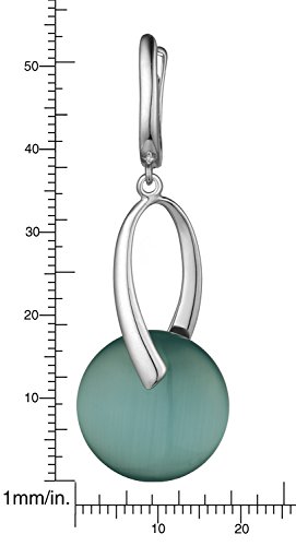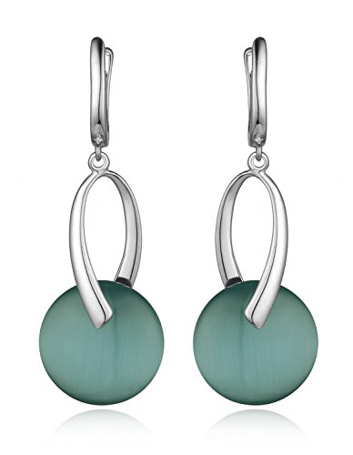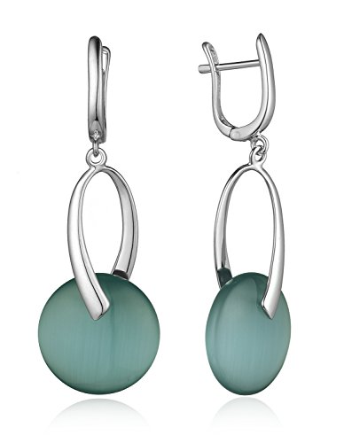 Rhodium plated sterling silver dangle earring featuring bluish green round cats eye solitaire. Joker of various dress acted the role of taste