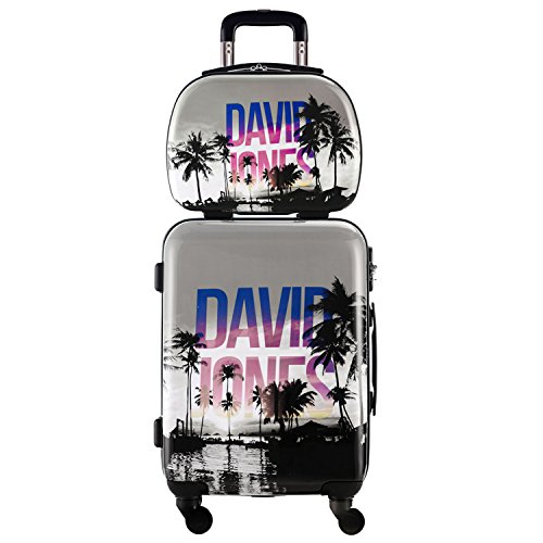 External features of DAVIDJONES 2piece cabin suitcase and hardware cosmetic case