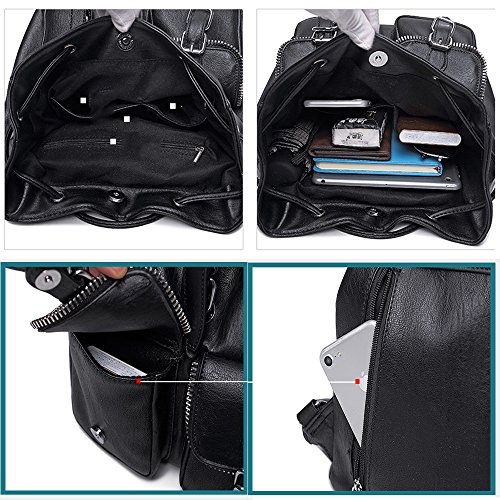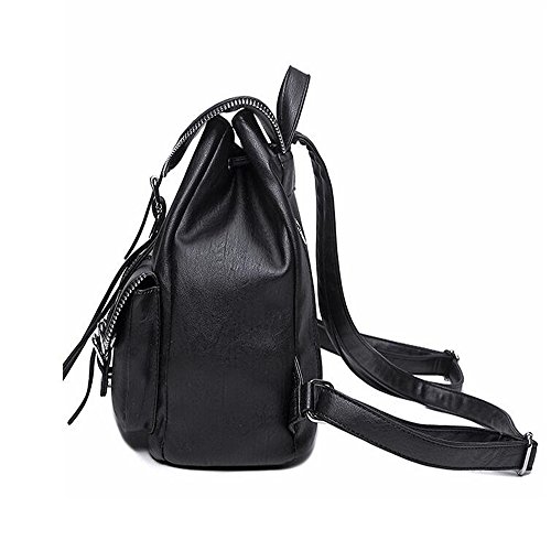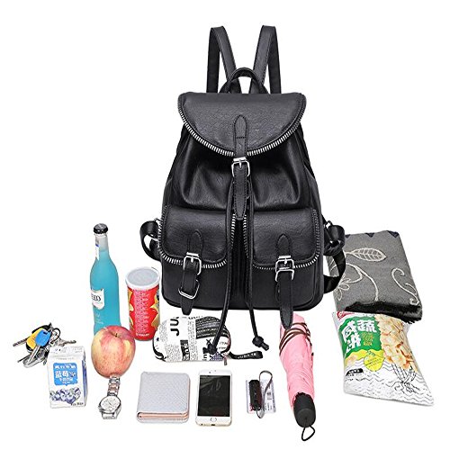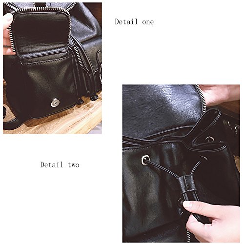 Jellybro Fashion Meshed Zipper Pocket Drawstring Black Faux Leather Womens Everyday Strape Backpack Shoulder Handbag? Material: PU? Lining: Polyester? Style: European? Interior Structure: Interior Zipper Pocket,Cell Phone Pocket,Document Pocket? Size: Large? Hardness: Soft? Suitable Occasion: Casual,Versatile? Gender: Women? Pattern: Plain? Dimension 10.7 inches (L) x 5.5 inches (W) x 9.43 inches (H).? Features:? ? Strape drawstring closure? ? Front flap has magnetic snap closure? ? Adjustable straps? ? Inside is lined, has one smaller zipper pocket? ? Advanced serrated zipper with bag mouth perfect decoration Dynamic and versatile, the deep interior provides plenty of space while maintaining beautiful proportions. Three exterior side pockets allow for easy access to essentials, while the interior pockets are the perfect size for everyday items. A hand-braided strape design features ties outside the zippered opening to accentuate a compact aesthetic. The Strape Backpack is built for durability.? The ultimate backpack comes in the form of this faux leather one and we can't wait to tell you why! Its exterior features two zippered pockets and zippered accents down the two side. Its interior is incredibly spacious with a zippered pocket and is secured by a drawstring closure and buckled flap. Take this with you on all your adventures as chic and functional accessory 0 |