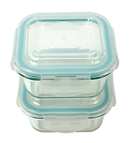 Kitchen Collection Set of 2 Glass Square 4.5 x 4.5 Lock Lid Storage Containers 09337