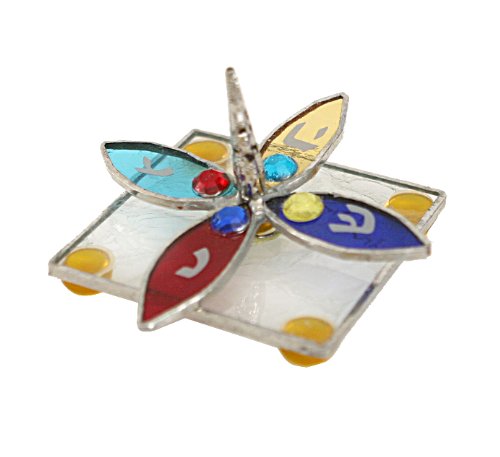 Product Description Hanukkah Chanukkah Dreidel Glass Silver Colorful Flower Design With A Base Hebrew Letters , Hand Made In Israel By The Renown Artist Anat Brigg , 4" x 2.2" . Perfect Great Gift for Hanukkah Collectors Kids Housewarming Birthday 0