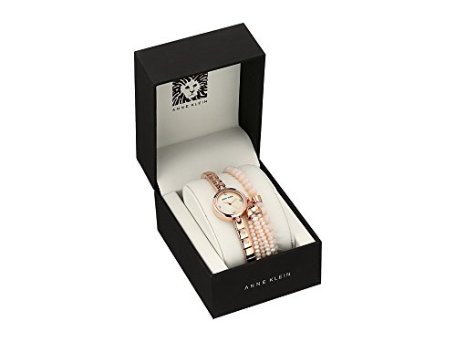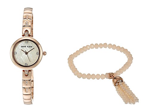 Mother of Pearl dial features rose gold-tone hands, crystal hour markers, and Anne Klein detailing.