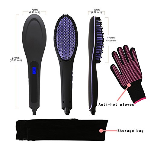 Studio : YCM Publisher : YCM Binding : Misc. Product Description Specification: Control Temperature: 176-446℉,(80-230℃) US safety Plug, Short-Circuit Protection. Temperature Setting Guide 1.For Thicker and Curls Hair,Choose 410-446Fahrenheit degree 2.For Common Hair,Choose 374-410Fahrenheit degree 3.For Thin and Soft Hair,Choose 338-392Fahrenheit degree Centigrade to Fahrenheit convert: press " ""-"at same time Notice:Long Press 3 Seconds to Turn On/Off This hairbrush for straightening hair leaves your hair silky, It's heat up to 356℉(180℃) in a minute, max 446℉(230℃) , auto keep constant temperature at 356℉180℃) 1.Please keep hair dry and neatly groomed before using. 2.Insert the plug into proper the socket. 3.Turn it on and adjust the temperature, you can use when the temperature reach what you want. 4. aIn the process of using, one hand pulls hair endnd comb with straighter. 5.If you want to keeps straight hair last longer, please use hair styling lotion and softener lotion and wash clean before hair straightening. 6.It should not clip too much hair, if you want to clip more hair, you should be slow down the speed in the process of drawing. 7.will be turned off by an hour automatically, turn it on when you use against. Package included: 1 * Digital Hair straightener brush 1* Black pack wrap 1 * user manual 1 *Heat Resistant Glove
