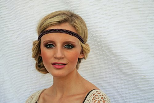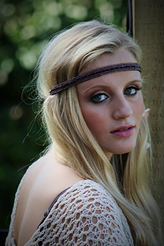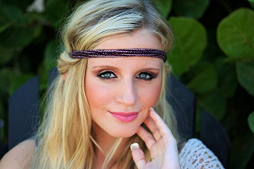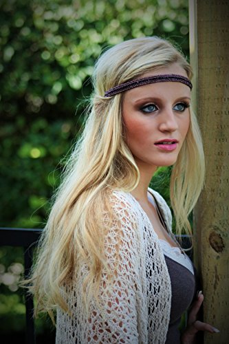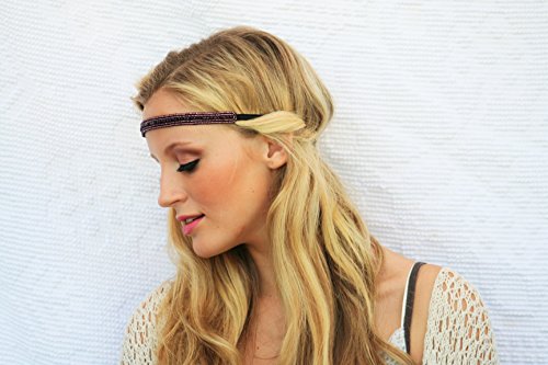 This Purple Rhinestone headband features round faceted rhinestones in the middle encompassed by surrounding seed bead embellishments along the band. This thin style is very bohemian and great for any outfit. Can be worn in short, med, or long hair. With all its glitz and glamour these unique headbands are backed by a high quality velvet so your hair does not catch while styled. Comes with a style guide so you can choose your style. Rhinestone headbands are fun, edgy, and pairs great to accentuate any outfit. Wear the headbands in a range of looks to compliment any type of hair. These are the new accessory to go with everything. Headbands are constructed with an elastic stretch band for a secure fit and are easy and comfortable to wear. Back of headband is a black elastic band, one size fits all. Look Sheet Guide comes with to show multiple ways to wear the headband.Feature