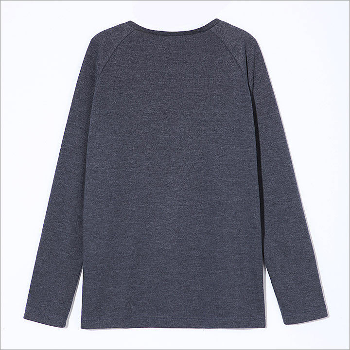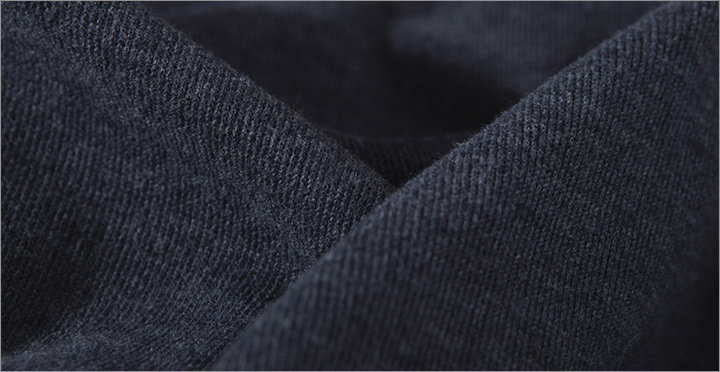 面料细节:采用了组织较为紧密的针织面料,布面有轻微磨毛效果,休闲时尚,且布面颜色沉稳,手感柔软自然,较为挺括