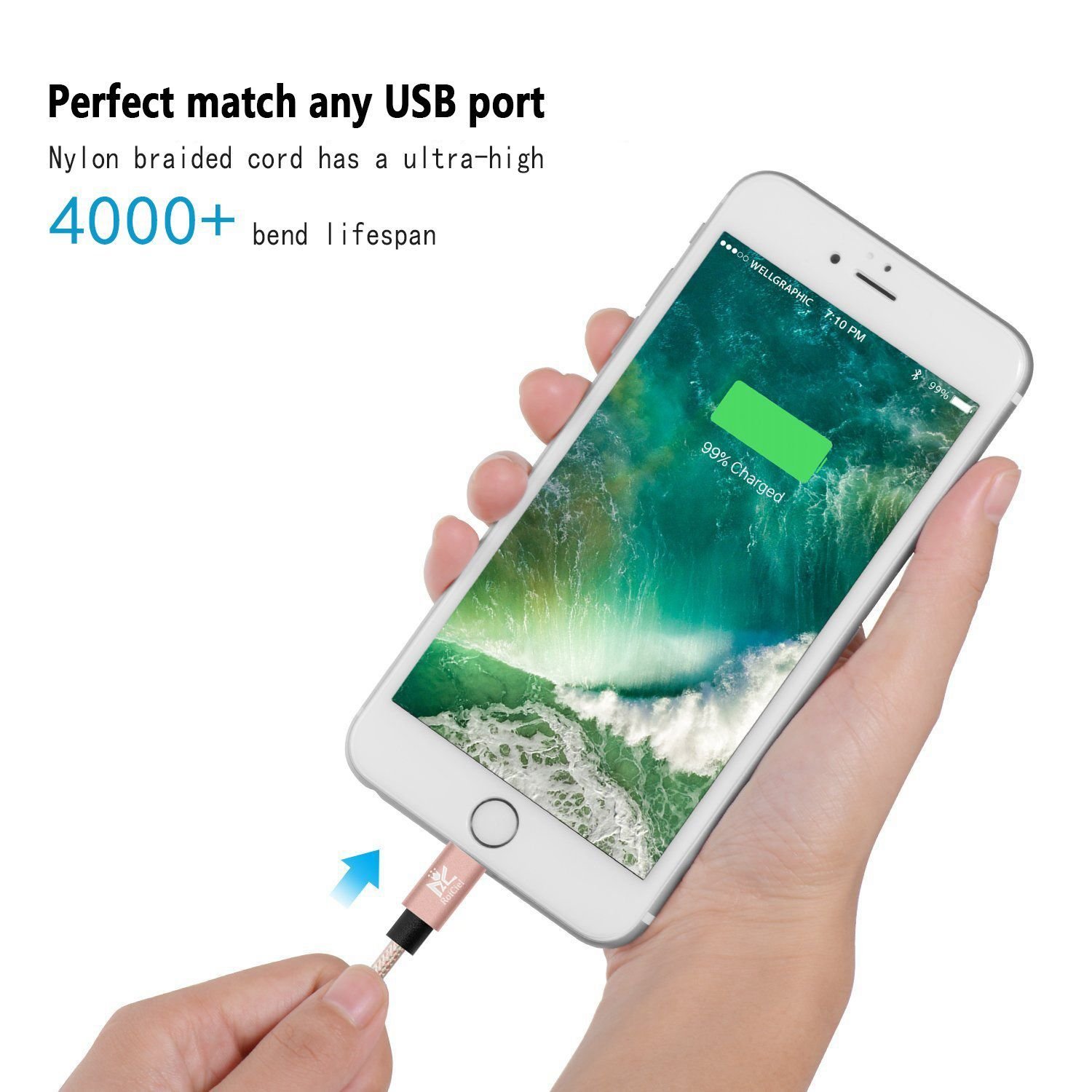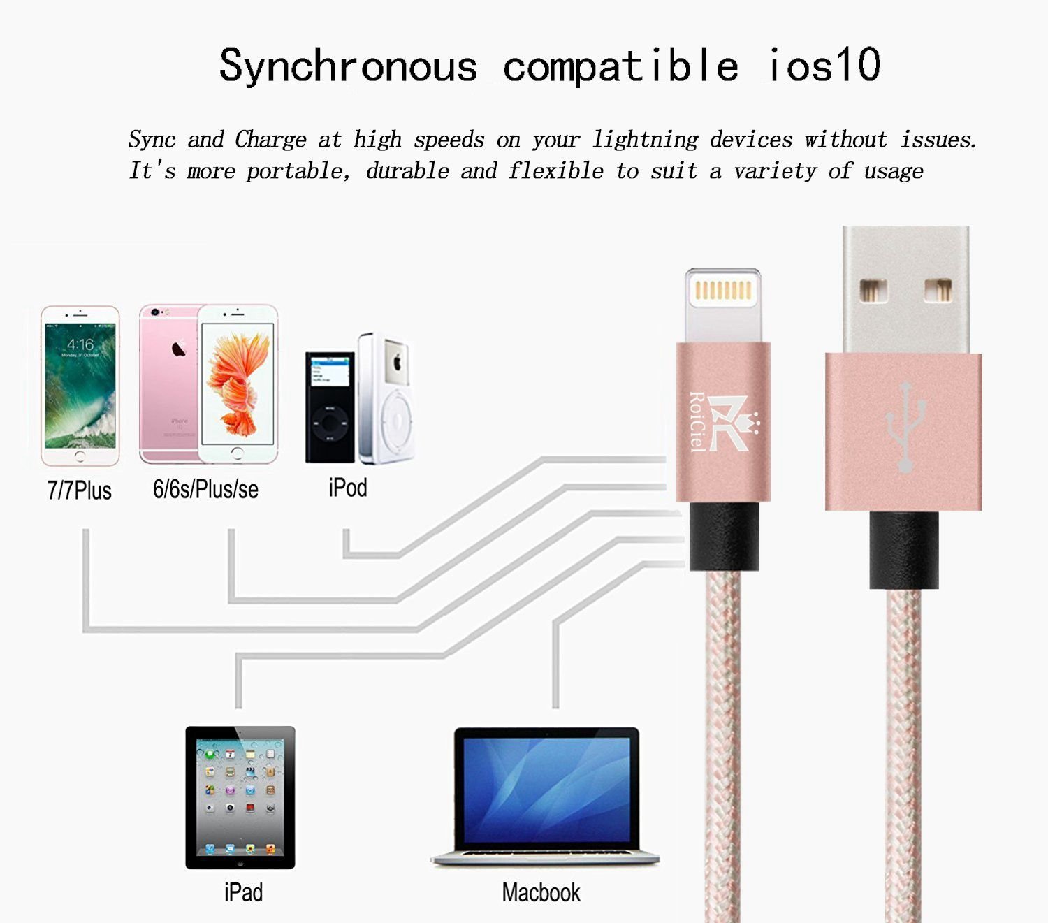 Package Contents: RoiCiel Double Weaving High Endurance Nylon Material Lightning USB Cable 3 Pieces