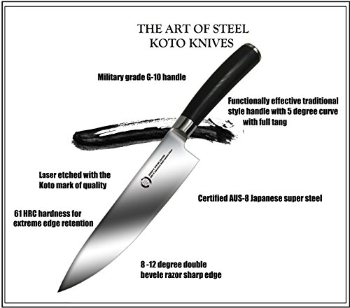 KOTO Knives, Taiken II special edition, 8 Inch Professional Gyutou Chefs Knife, Best Japanese AUS 8 High Carbon Stainless Steel Chef Knife With Full Tang, Ergonomic Handle And Premium Packaging.