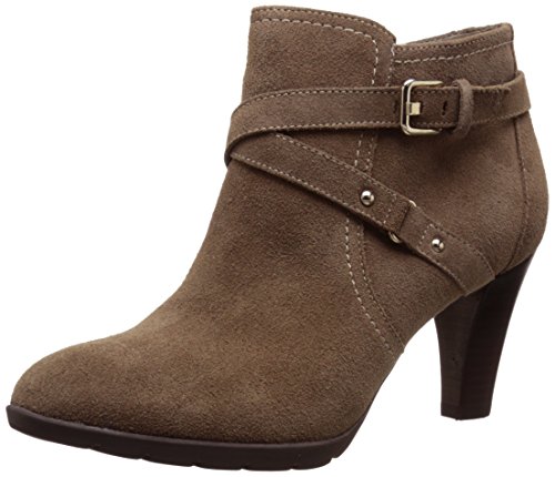 Side zip closure. Decorative buckle accents at ankle. Round toe, ankle bootie silhouette. Textile lining and insole. Stacked heel. Man-made outsole. Imported.Feature