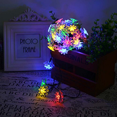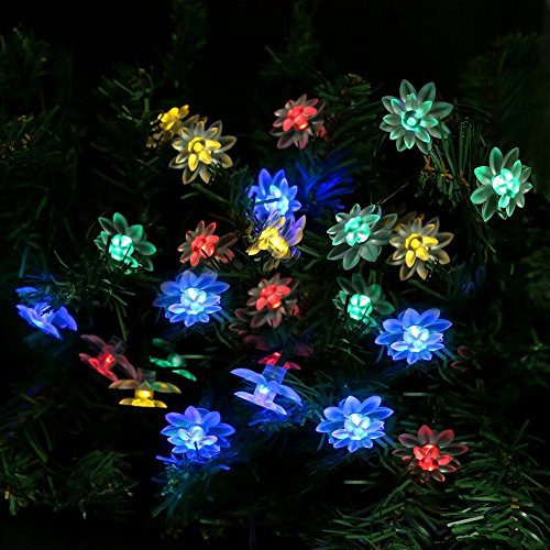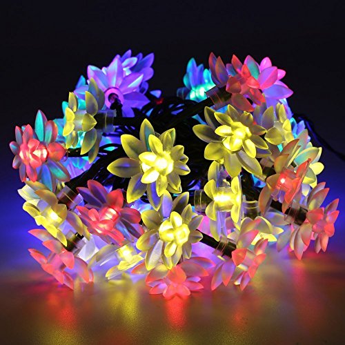 Bormart Solar String Lights 50 LED Lotus Flower Light for Home Decoration Party Festival LED Christmas Lighting Colorful - Red / Yellow / Blue / Green