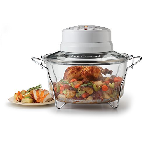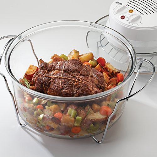 Enjoy easy home cooking with the Aroma Turbo Oven. Fresh baked cookies. Succulent roasted chicken. Crispy French fries. Prepare all this and so much more with the turn of a dial! Aroma takes the ''cook'' out of home cooking - turning kitchen time into your time! Help the kids with homework, get creative at play time or pick up that novel you''ve been waiting to dive into. All while delivering hot, hearty and healthy meals the entire family will love. Cook faster, healthier and more evenly with convection heating as the oven pulls in air, heats it up and circulates it around food for perfect results every time. Quick searing and shorter cooking time seals in juices and nutrients for superior flavor and nutrition from all your favorite foods. This convenient oven''s large capacity cooks enough food for everyone and brings healthy food to your table by eliminating the need to cook with additional fat. And when the cooking is done, enjoy the removable racks and easy-to-clean tempered glass bowl you''d never find with a traditional oven.
