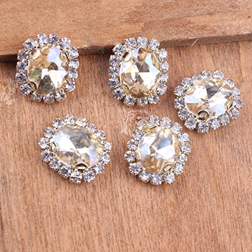 ZIJING 14pcs Gold Castting Champagne Rhinestones OVAL Facets Beads Czech Crystal Glass Elements With 4 Holes for Sew On (Center Beads champagne Gold--14pcs)