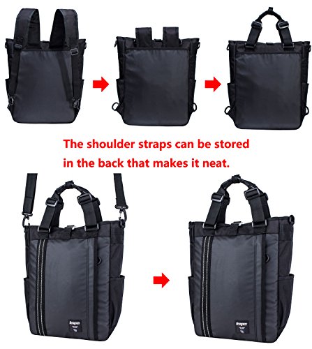 -. Feature : Material: The backpack is made of polyester which is lightweight and not hot when you wear it; the loops are made of plastic. / Size: 11.8*15.5*5.3in (L*H*W), 30*39.5*13.5cm (L*H*W); Weight: 0.74KG; Padded laptop pocket can hold most 14 inch laptop. It is a great size to take to a day trip or shopping in daily life. / Spacious space for storage: 1 external zipper pocket can organize an iPad. 1 main compartment with padded laptop lining allows you to keep a laptop safely; the main pocket can put A4 notebook, magazine, clothes and other stuffs. 2 open inner pockets can store your cell phone, purse; 1 inner zipper pocket can hold your key or other small stuffs; 3 holders to keep pens in place; 2 side pockets can hold drinks water and umbrella. / Multi-function Convertible Bag: this bag can be used as a laptop backpack, handbag, messenger bag and shoulder bag in various occasions such as working, traveling. The backpack strap can be hidden when use it as a shoulder bag or briefcase. This bag has a top handle and a detachable strap; you can use it as a handbag or cross-body bag. It is the perfect duffle bag to carry your clothes for short trip, sports. / Application: It has fashion design, good quality and casual style. The casual daypack is great for walking, hiking, camping, climbing, running, cycling, bike riding, etc. Please allow little smells.
