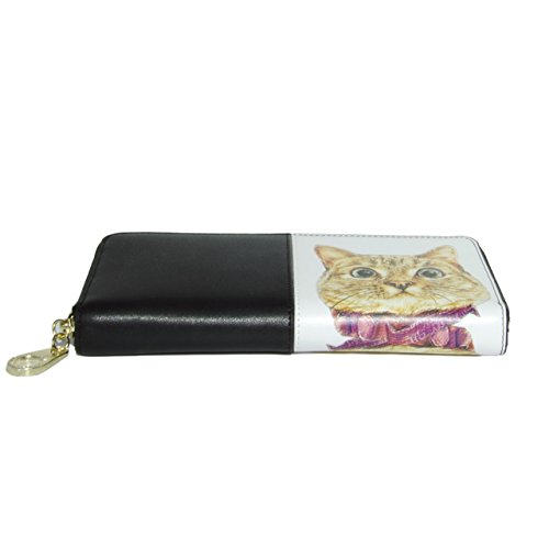 -. Binding : Apparel -. Brand : QIANBH -. Department : womens -. Feature : Cute and unique cat wallet for women / girls. / Material: made of high quality real and faux leather. The cat is split leather and the rest is faux leather. gold metals. / Structure: 3 compartment in the middle, 8 card slot and 2 cash holder, 1 zipper pocket inside. Zipper closure for security / Applicable: This women purse can easily hold your iphone 7 6 plus / credit card / cash / passport / coin etc. High recommended for office lady / college student / city beauty. / Dimension(LxHxW): 7.8x 4.1x 0.8 inch. -. ProductGroup : Apparel -. ProductTypeName : ACCESSORY -. Title : Cat Wallet for Women Cute Zip Purse Leather Handbag Card Bag Large Clutch Black