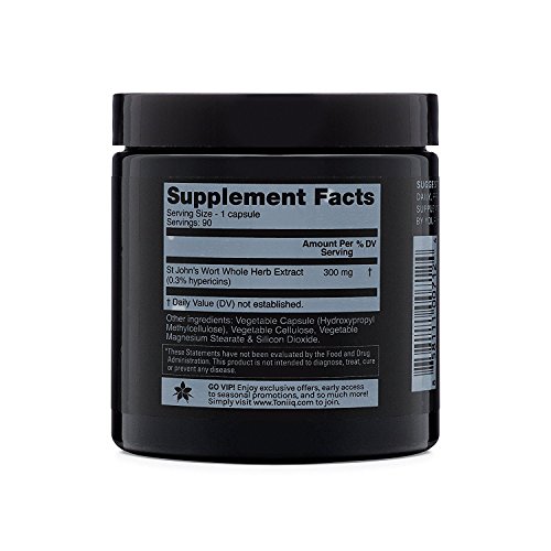 -. Feature : MOTHER NATURE'S MOOD STABILIZER: Reap the benefits of one of nature's most powerful mood-enhancing herbs. Traditionally used to address a wide variety of ailments, St. John's Wort capsules are commonly utilized today for enhanced mood support and emotional well-being*. / HIGHEST POTENCY FOR SUPERIOR RESULT: Toniiq's St. John's Wort formula has the highest available potency at 0.3% Standardized Hypericin per serving (more than most St John's Wort Organic / St. John's Wort herb extracts, St. John's Wort Oil, St. John's Wort Tea, and St. John's Wort seeds). Hypericin is the best known active compound of St. John's Wort, and has been attributed with numerous health promoting properties linked to its mood-supporting activity.* / FAIR TRADE, ORGANIC, ALL NATURAL: Toniiq's St. John's Wort formula has the highest available potency at 0.3% Standardized Hypericin per serving (more than most St John's Wort Organic / St. John's Wort herb extracts, St. John's Wort Oil, St. John's Wort Tea, and St. John's Wort seeds). Hypericins are the best known active compound of St. John's Wort, and have been attributed with numerous health promoting properties linked to its mood supporting activity.* / TONIIQ MONEY BACK GUARANTEE: We always hope you're happy with your Ease by Toniiq, but if you've had anything less than a first-class experience, we'll refund your money back, no questions asked.