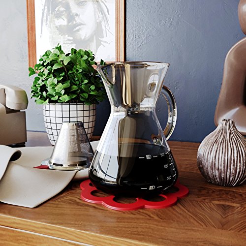 THE MOST FLAVORFUL COFFEE YOU'VE EVER TASTED: The unique cone mesh filter and pour over carafe style coffee maker has the ability to coax a wider range of flavors from your ground coffee beans than any other coffee pot on the planet. You'll discover subtle flavors not possible with ordinary automatic dripper brewers.