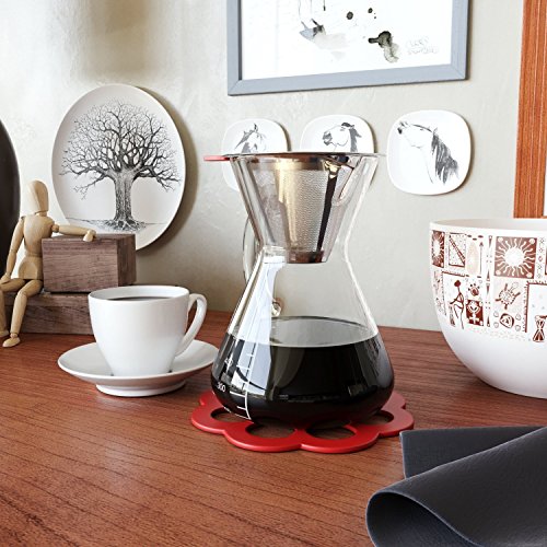 The red silicone trivet insulates as well as protects your coffee carafe and countertop or table while providing a cheerful place to put your coffee maker while it's brewing.