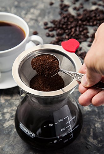 Coffee lovers everywhere are discovering the amazing taste difference that comes from a slow-brewed pour over cup of coffee. It's the unique cone shape and the micro perforated stainless steel mesh that allows for a full range of flavors to develop completely.