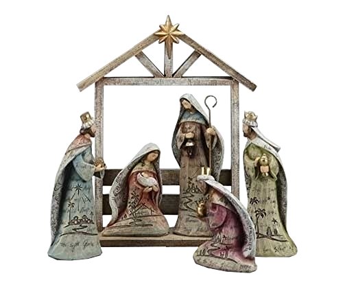 6Pc Set 12" Nativity With Stable Wood Scene by Roman