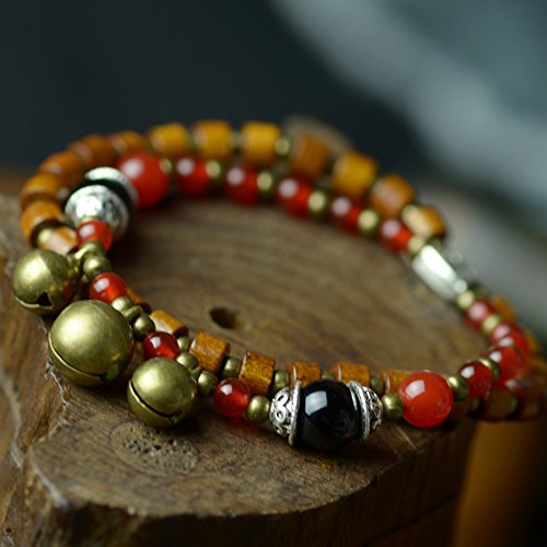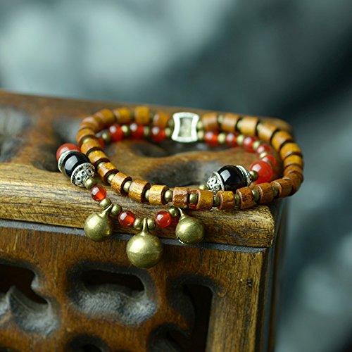 Cyqun(TM) Tibetan Natural Wooden Beads Tennis Bracelet with Bells,Style 2