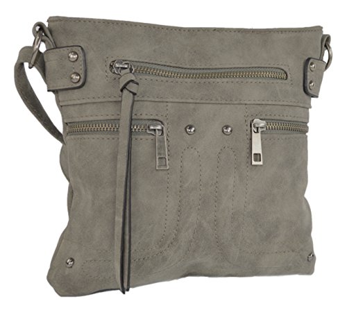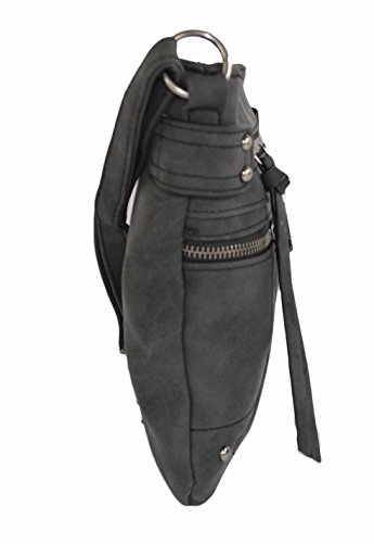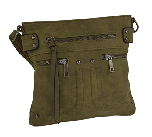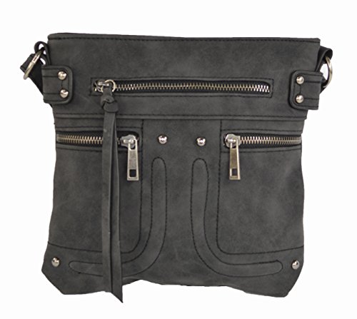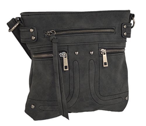 Motor-style crossbody bag is crafted from soft vegan leather for comfortable, everyday wear! Double faux pockets accent the purse with one front zip pockets for quick access to your phone or keys. Interior is fabric lined with two slip pockets and one small zip pocket to secure your small items. Carry your wallet, sunglasses, and any other miscellaneous items in this medium size tote. Measures 9 inches tall and 9.5 inches wide. Sturdy adjustable strap rest comfortably and extend to 50 inches to wear across the body, over the shoulder, or as a handbag. Makes a great gift!Feature