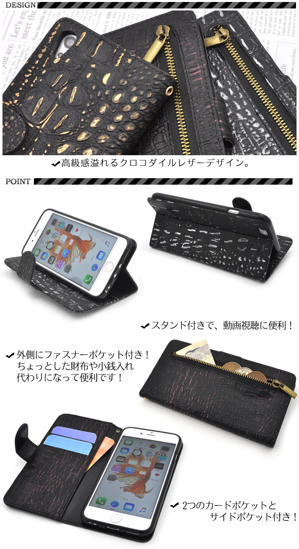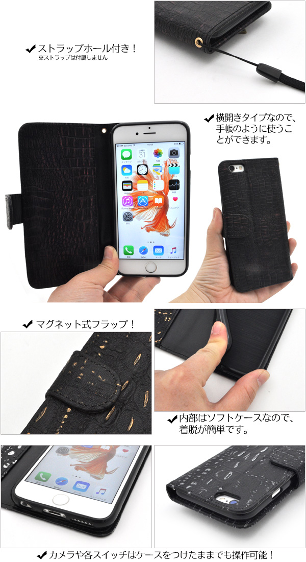 クロコダイルレザーデザインのiPhone6/iPhone6s用スタンドケースポーチ。