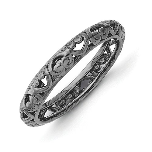 -. Feature : Black ruthenium plated sterling silver / Domed open back, carved heart design / Approximate band width 3.5mm / Average item weight is 2.0 grams / Includes our custom gift box