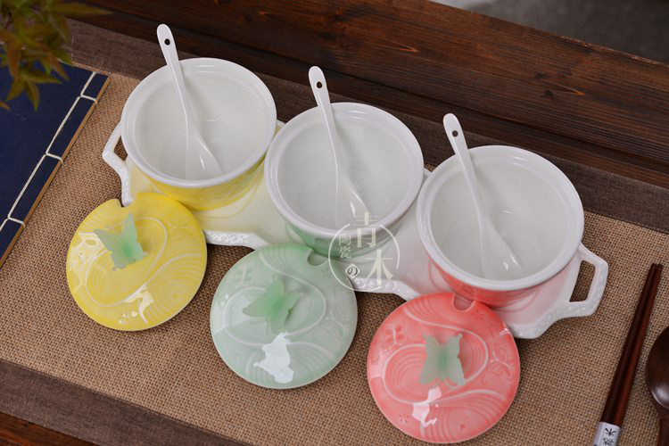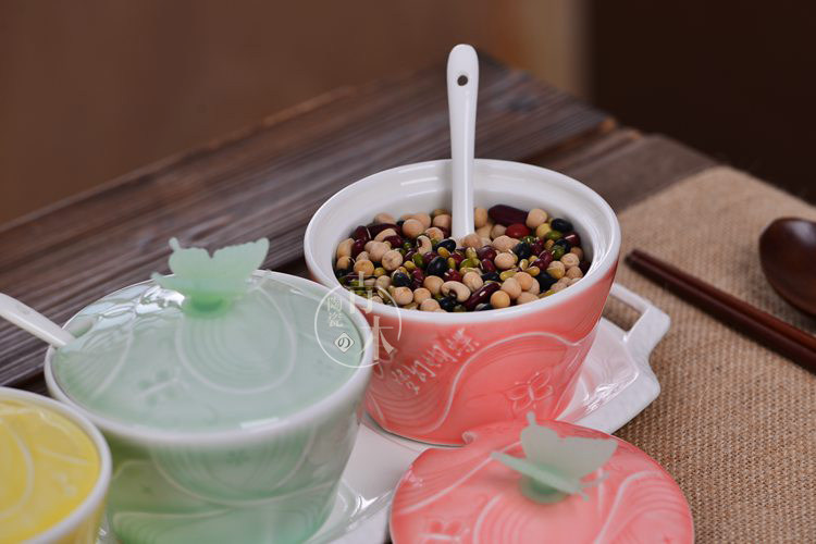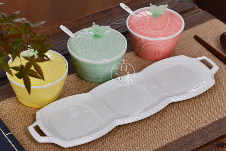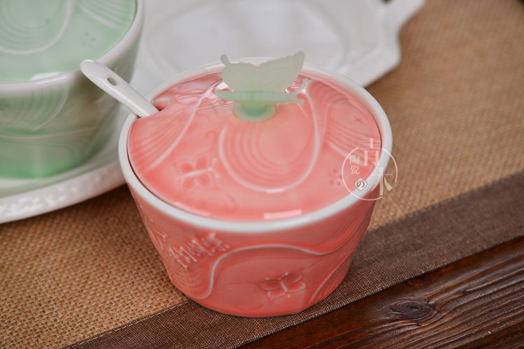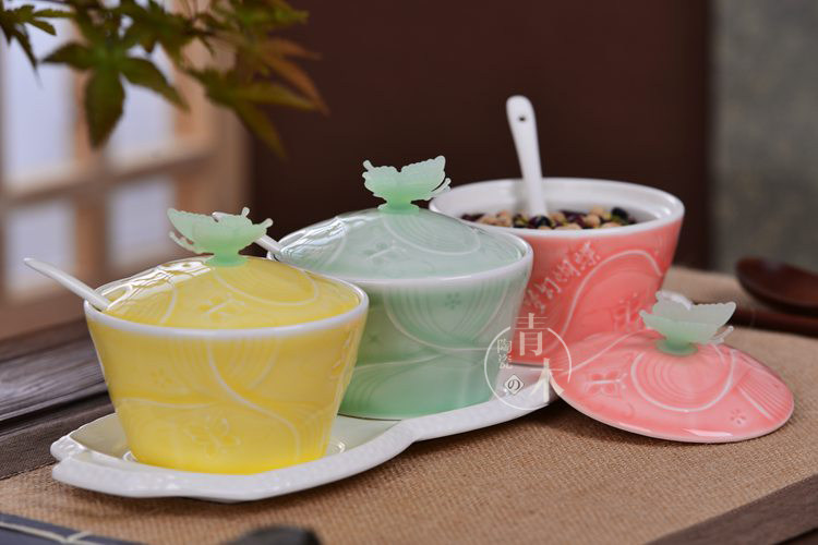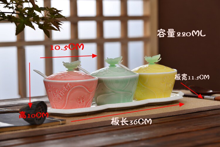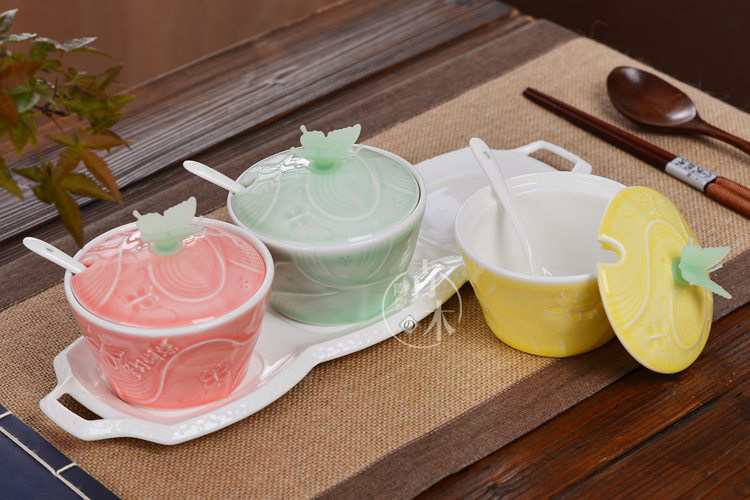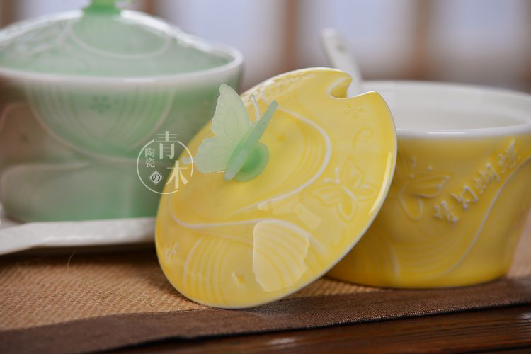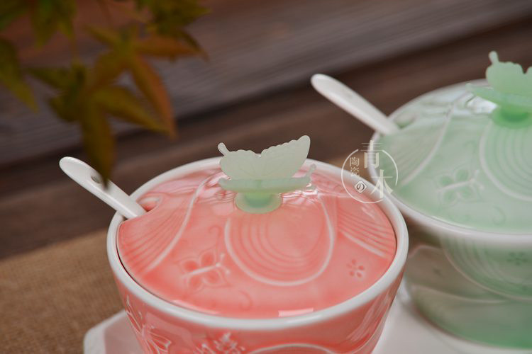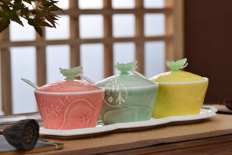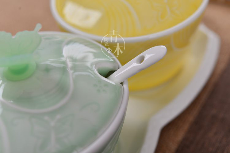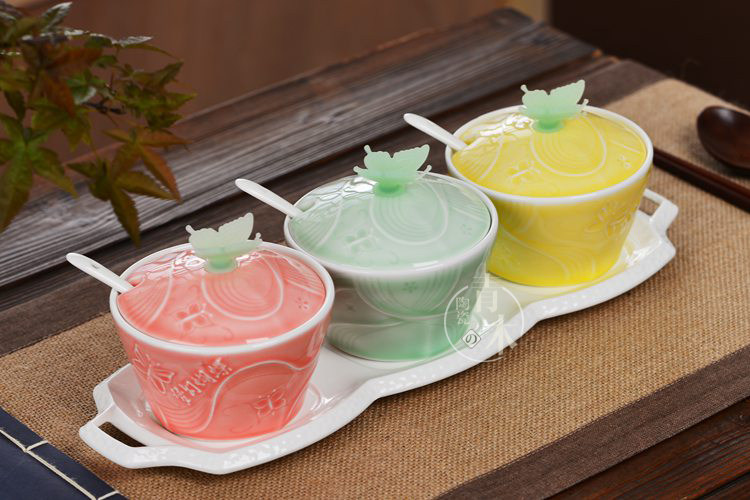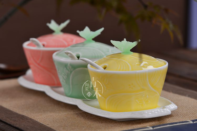欧式创意蝴蝶浮雕调味瓶盐罐 厨房调味罐套装 陶瓷调味盒 调料盒