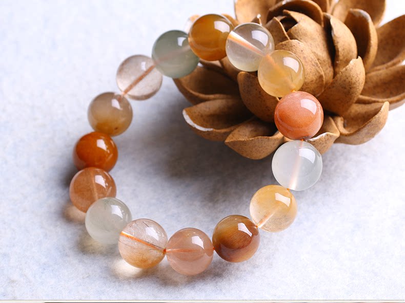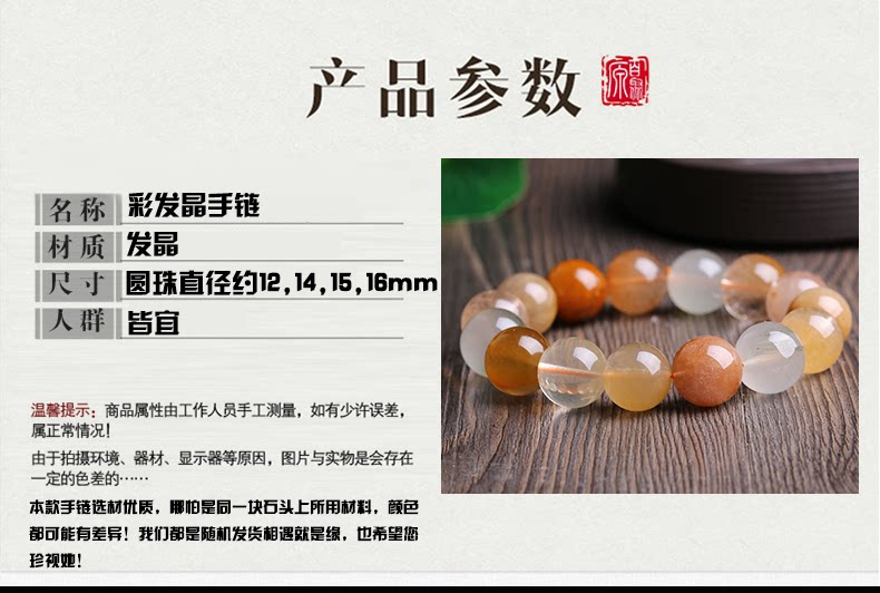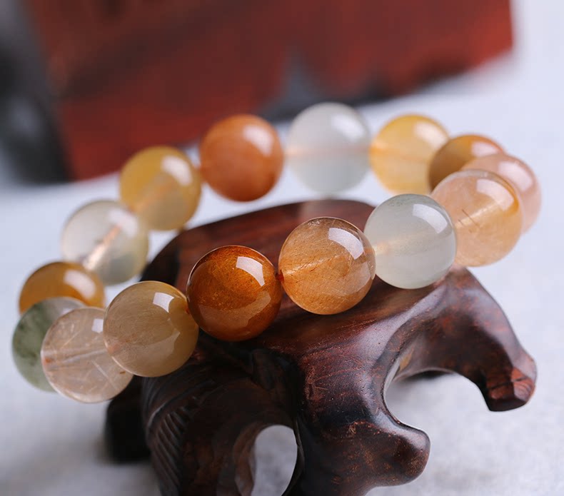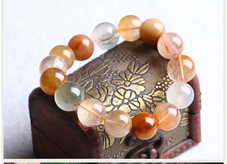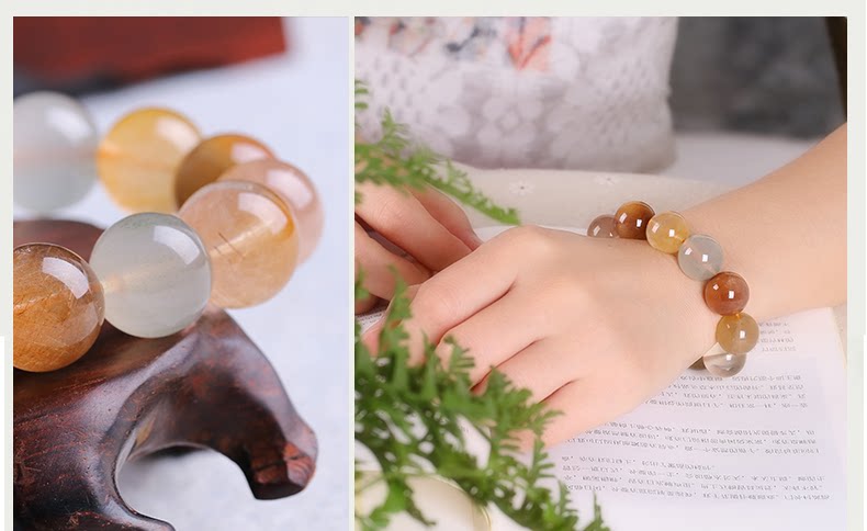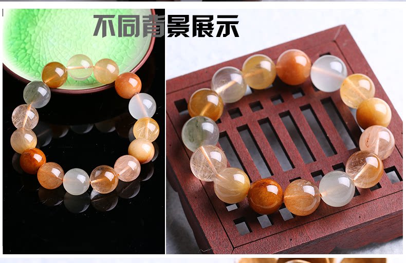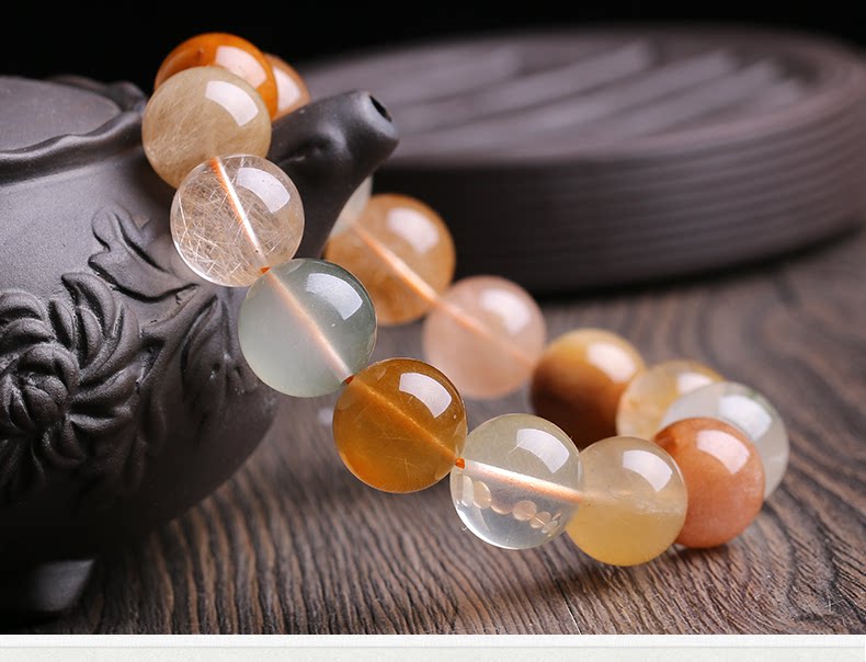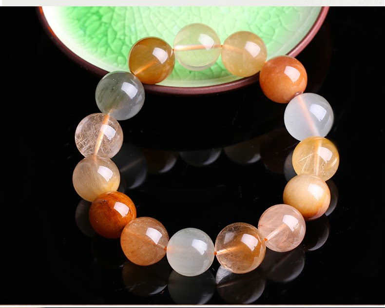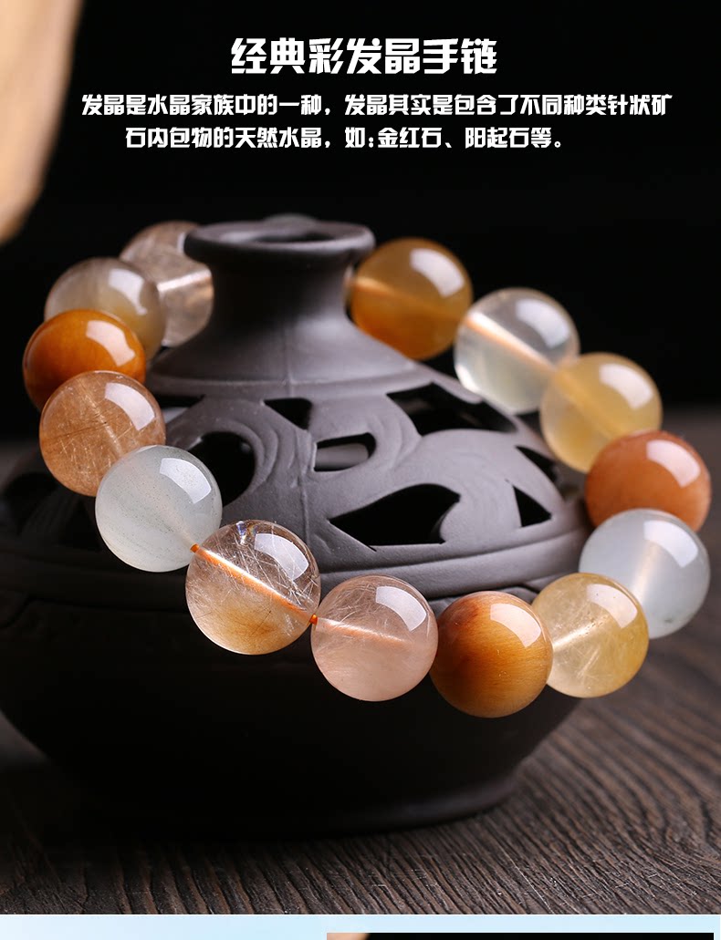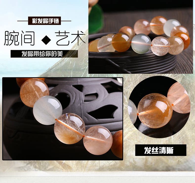 开光天然福禄寿彩发晶手链 钛晶单圈手串男 水晶时尚饰品