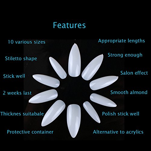 [Product Information]- 1. Stiletto nails is another super trendy amid the acrylic nail shapes. These are extra long and pointed nails, which will make you to rock any event. It makes the fingers appear longer and thinner than they really are.