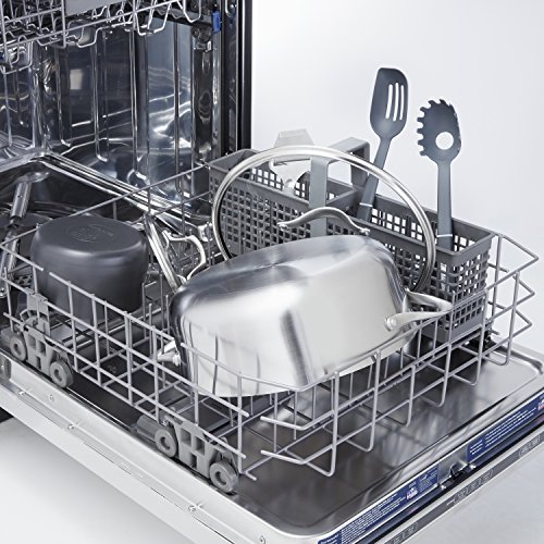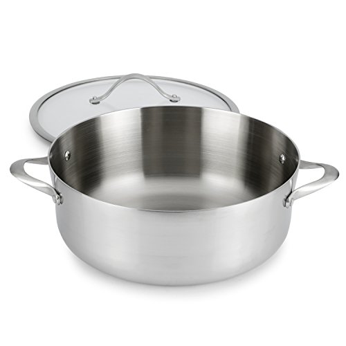 -. Feature : A heavy-gauge aluminum core is sandwiched between two layers of stainless steel by means of high-heat, high-pressure impact bonding for extreme durability. / Aluminum core provides superior conductivity and even heating for excellent browning and control of the cooking process. Non-porous stainless steel cooking surface is safe for use with all utensils. / Clear tempered-glass lids let you see food while it's cooking and are oven safe, so you can finish covered dishes in the oven or keep them warm until ready to serve / Long, brushed stainless steel handles stay cool on the stovetop. All cookware is dishwasher-safe and carries Calphalon's full lifetime warranty. / Ideal for searing and braising meats, browning meats for savory stews, and preparing delicious soups. Domed lid with inside points allows continuous self-basting for flavorful meats.