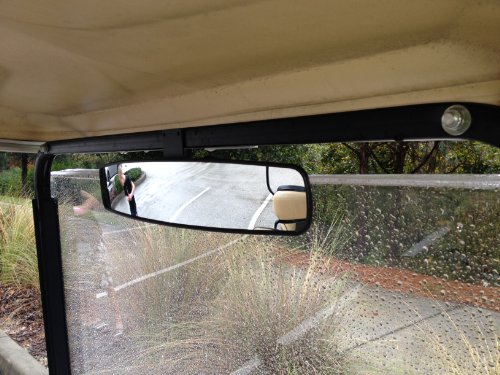 Studio : Maverick Advantage Publisher : Maverick Advantage Binding : Misc. Product Description Fits many golf carts such as EZ Go, Club Car, Yamaha..... * 3.2" x 16.5" mirror face. * Curved to see everything behind you, without distortion, or multiple panels to look at! * With this panoramic mirror, 5 panel mirrors are thing of the past. No more winks. * No more picking which of the 5 panels to look into. Just look into the mirror face and see everything in one quick glance. * Easy to look into and see 150 degrees behind you! You can see just about everything behind your left and right hand shoulders. * Easy to install with the provided bracket plate (heavy gauge steel) and two self tapping screws. * Durable mirror for all terrains. * This mirror pivots up and down with a very high end friction hinge rated for 1 million adjustments. Set is where you want for your height and your done. * No side adjustments necessary because the panoramic mirror allows you to see 150 degrees behind you. * Mirror made of real glass with a ABS plastic rear housing. * Be safe and able to see what is going on behind you. * Universal fit for many brands of golf carts. PLEASE MAKE SURE THAT YOU HAVE A METAL CROSS BAR OR PLASTIC RIB IN THE AREA THAT YOU WANT TO MOUNT THE MIRROR TO. THE MIRROR IS MOUNTED VIA TWO SELF TAPPING SCREWS. 0