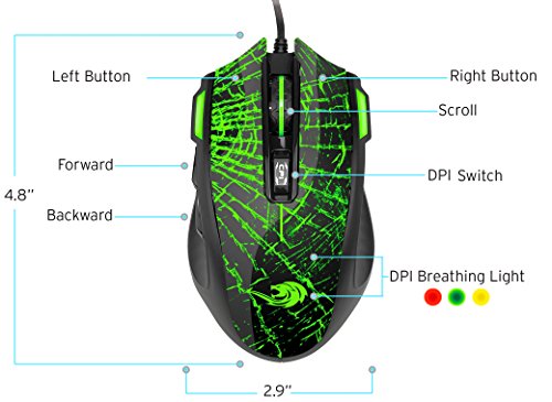 The Etekcity Scroll FLY wired USB optical gaming mouse is the perfect choice for business, leisure or intense gaming. Ergonomically designed and lightweight, it minimizes hand fatigue for all-day comfort and control. The universal design allows for right or left handed users, along with multiple DPI settings and forward/backward browsing buttons. You'll quickly notice the smooth and accurate scrolling. The contemporary design and LED light add an aesthetic presence to your computing you will be proud to display.