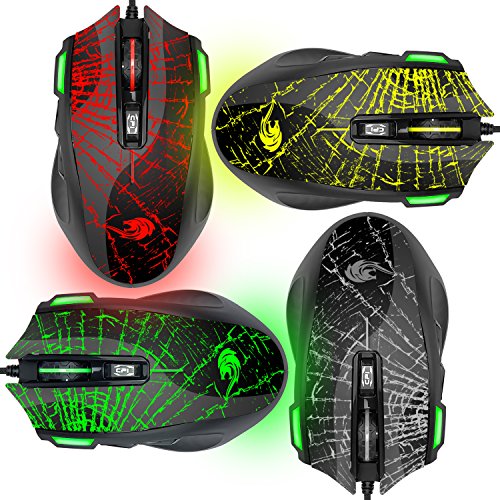 Etekcity Scroll FLY 3200 DPI Wired USB Gaming Mouse with 6 Programmable Buttons, Black