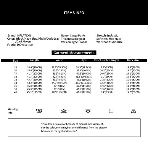 100% Cotton Cargo pants:Relaxed fit, soft, breathable and skin friendly. Wrinkle and Pilling resistant. Not easily fade.