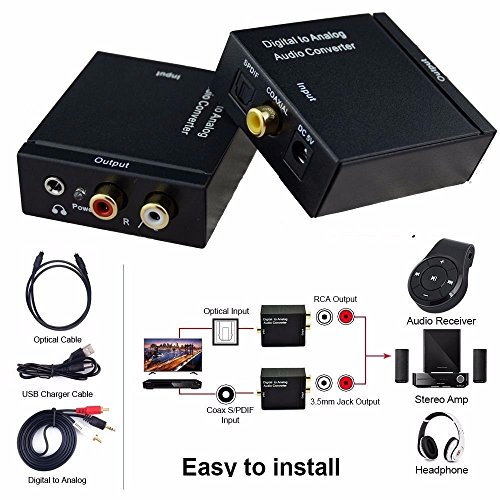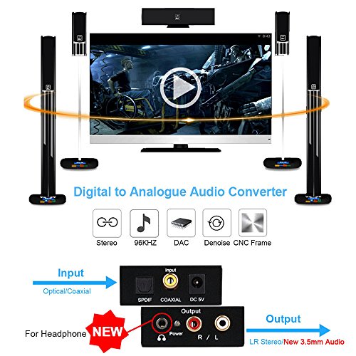 This digital to analog audio converter converts coaxial or toslink digital audio signals to analog L/R audio and connects to an external device such as an amplifier via standard RCA jacks or to headphone with a 3.5mm stereo jack cable, better Sound amplification effect