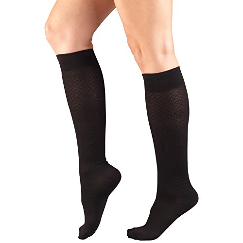 Truform Women's Fit Compression Socks, Diamond Knit Pattern, 15-20 mmHg, Black, Large (Pack of 2)