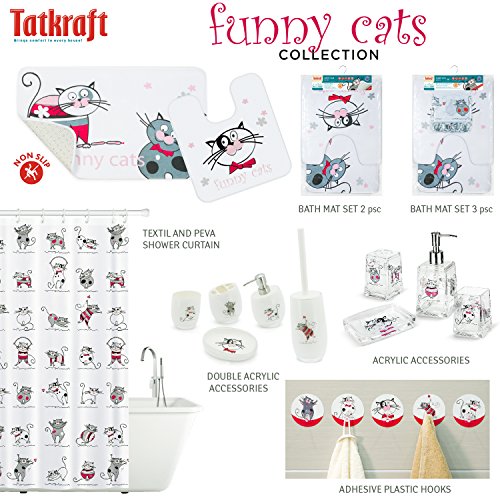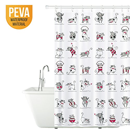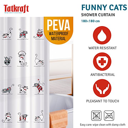 Tatkraft Funny Cats Peva Shower Curtain 180X180 cm Waterproof 12 Rings