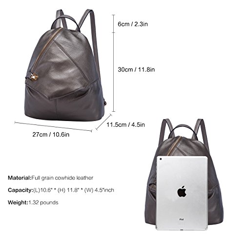 Genuine leather backpack contain 1 generous pocket and 1 wall zipper pocket,Have phone slot and credential slot.Easily carry your mobile phone(iPhone 6/6s/7/7plus),wallet,cosmetic,IPAD,umbrella and mini laptop,meet your daily needs. It's a great gift for yourself or friend.